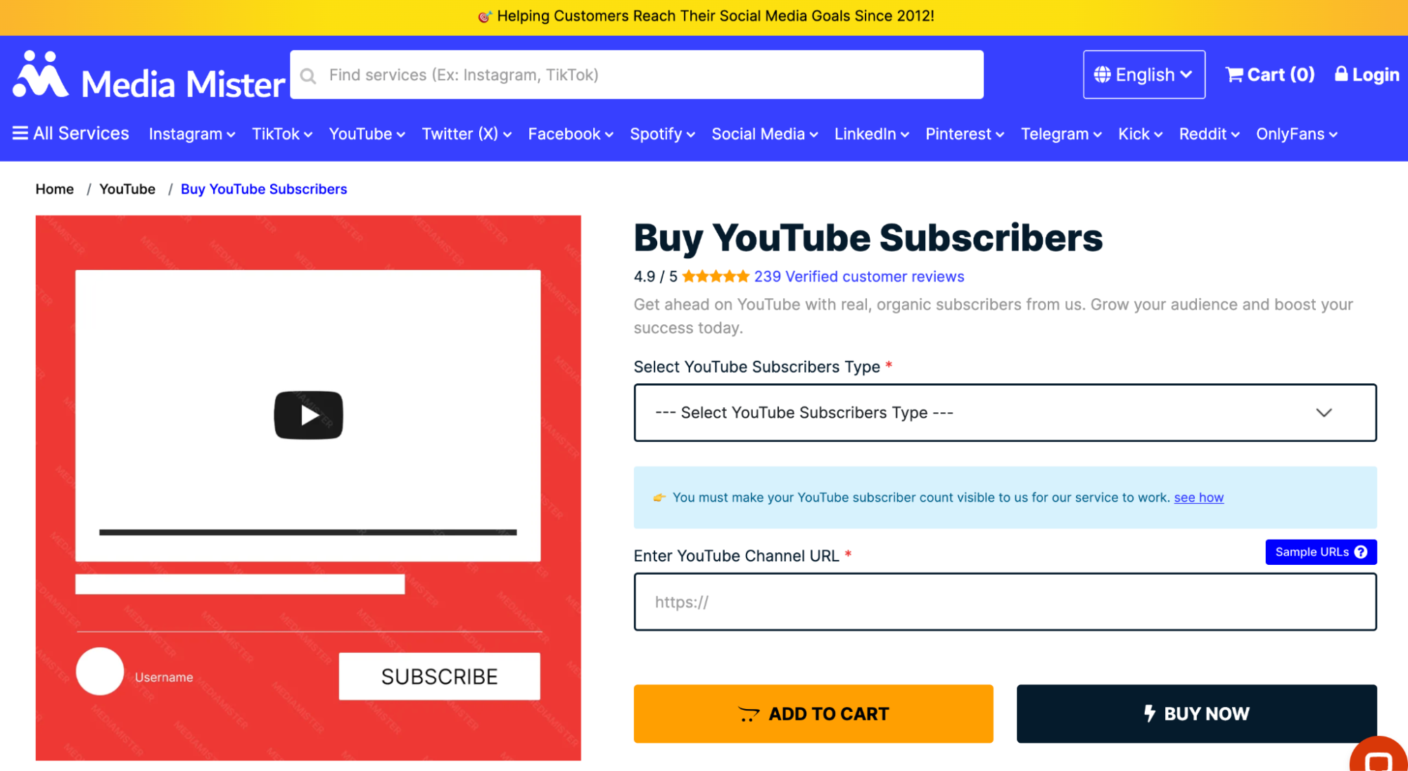 2. Media Mister – Best for Real and High-Quality YouTube Subscribers