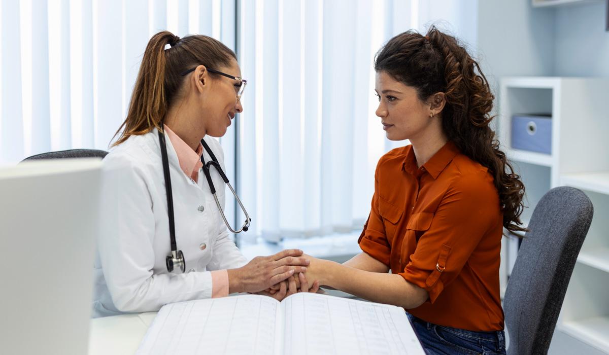 ALT Text: Doctor comforting patient during clinic consultation