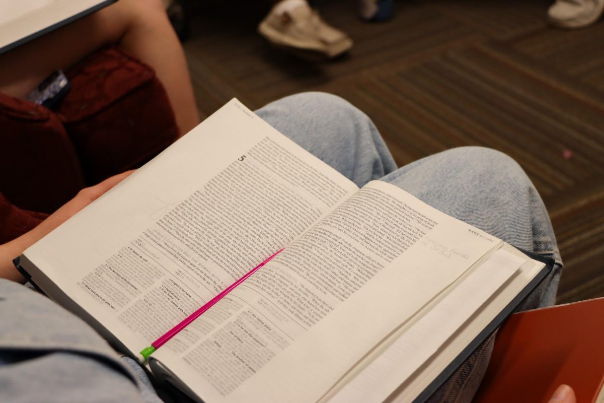 On April 8 at 7:30 p.m., a women’s Bible study began its meeting. This particular group has two leaders, juniors Jordan Rangel and Abby Collings, and five members, allowing for a lot of personal discussion. Their lessons are focused on the women of the Bible, as well as passages that align with the current liturgical season of the Catholic Church, offering members a more customized approach.